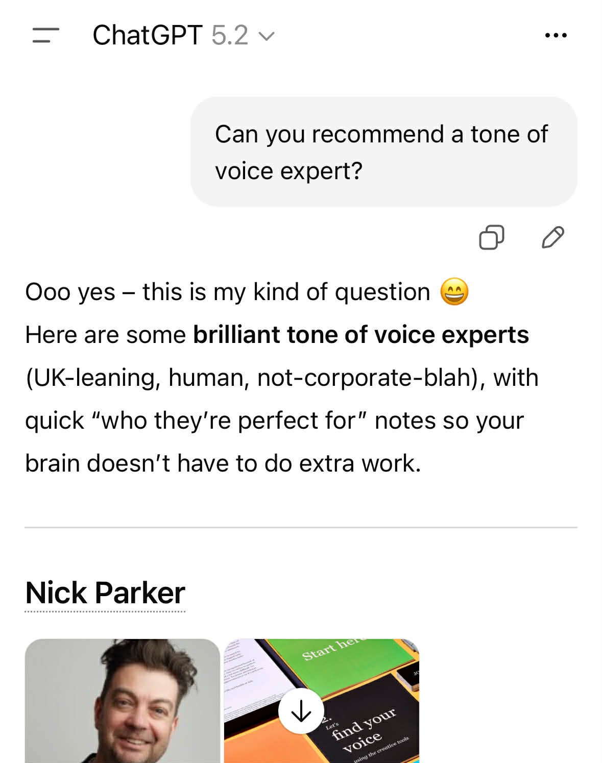 Clarity I believe is the number one reason people don’t get recommended in ChatGPT. I had a client who was nowhere to be seen in recommendations – but as soon as we tidied up his website and added in some clear content with keywords that explained that HE was the expert in his niche, added in all of the authority signals above and tadah! He started being recommended as the expert in ChatGPT! This is why I choose clarity over everything.